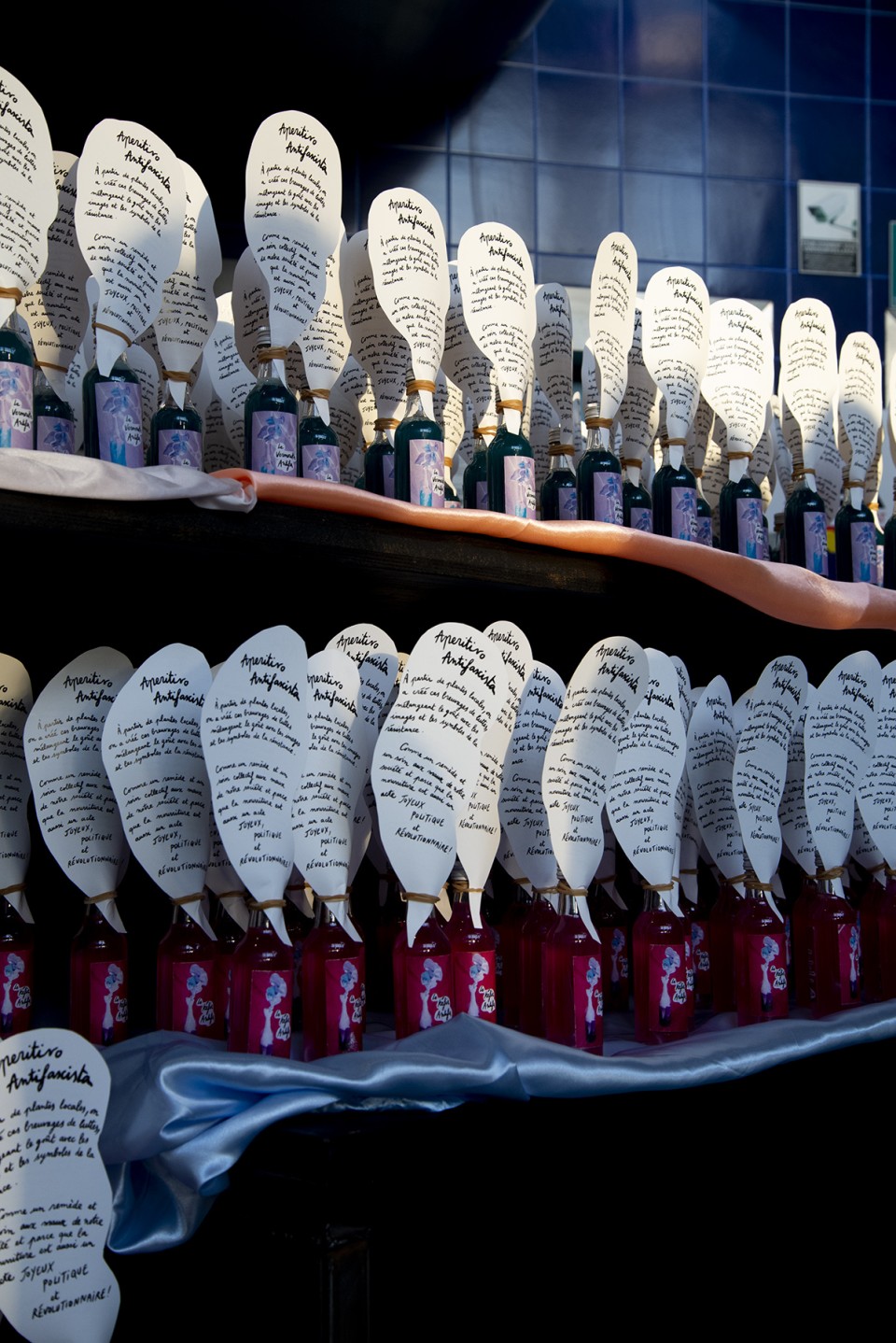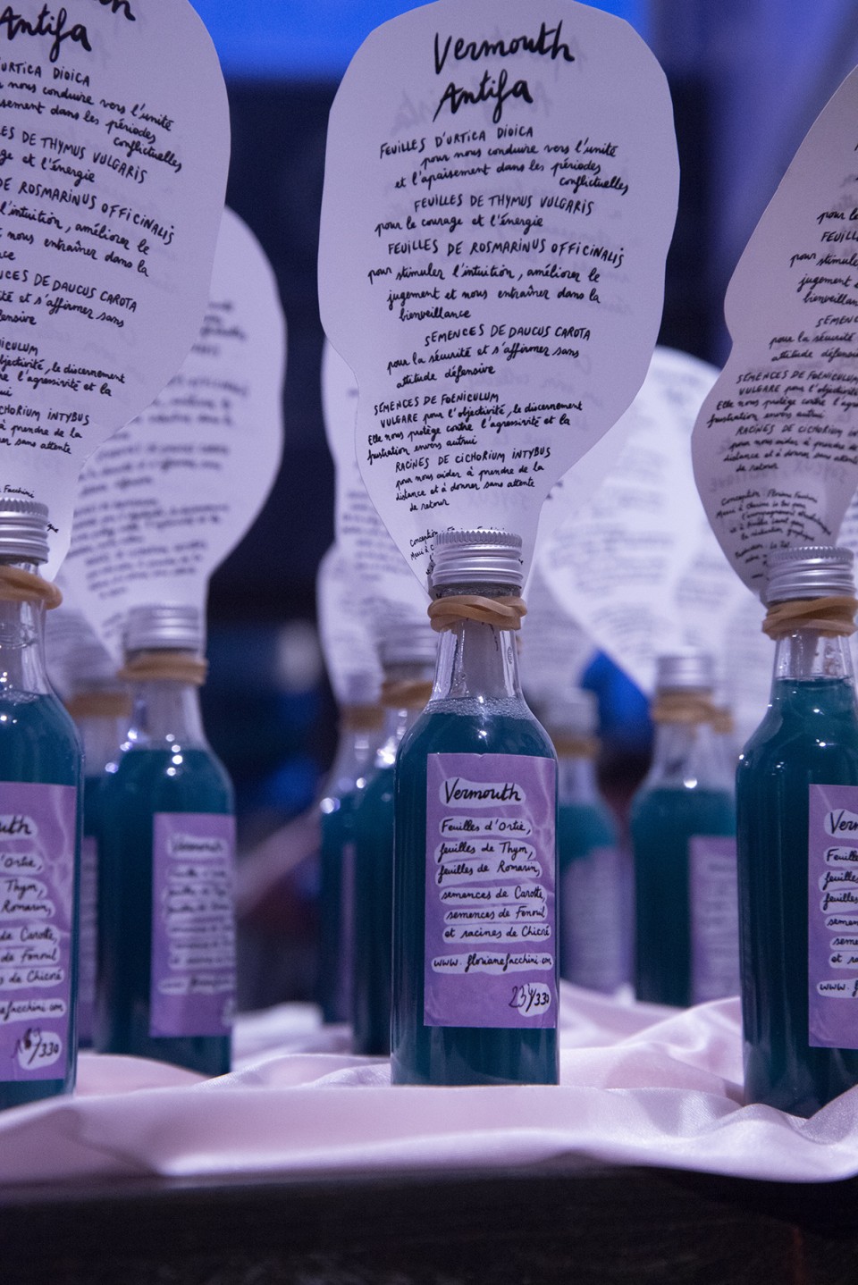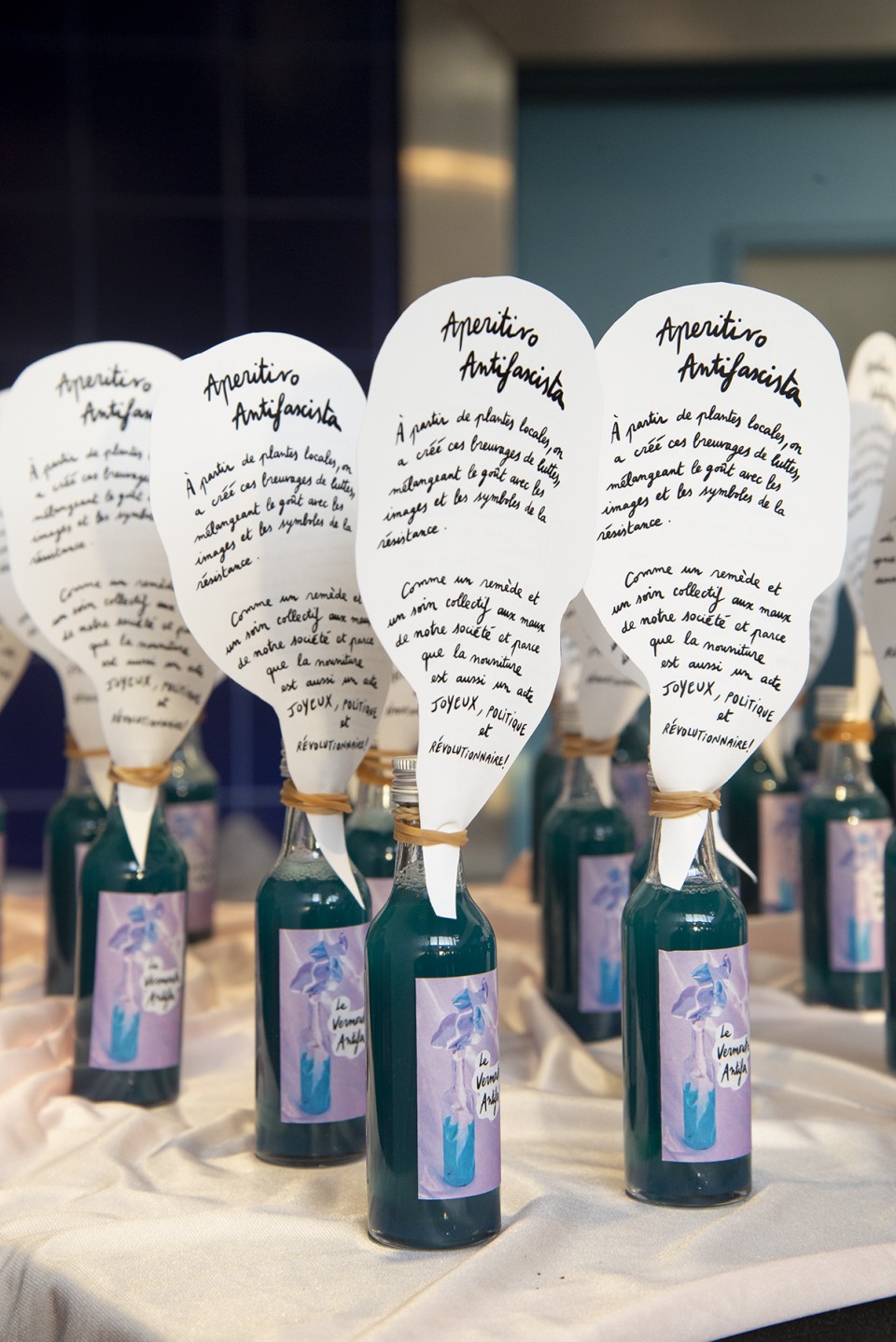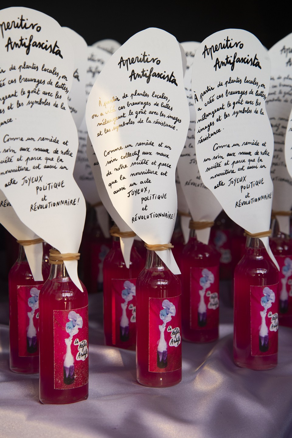 À partir de plantes locales, on a créé ces breuvages de luttes, mélangeant le goût avec les images et les symboles de la résistance. Comme un remède et un soin collectif aux maux de notre société et parce que la nourriture est aussi un acte joyeux, politique et révolutionnaire !