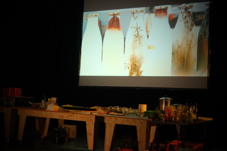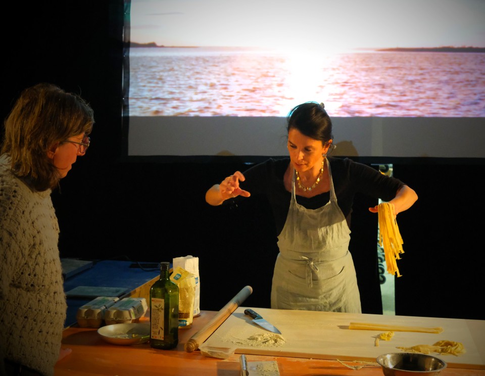 Les récits et l’alimentation sont de formidables outils pour changer de perspective et recréer du lien! Deux ans après le joyeux banquet de Cucine(s) réalisé en juin 2022 avec les habitant.e.s du quartier des Aygalades, toujours à l’invitation de Lieux Publics, Floriane Facchini & cie débute un nouveau chapitre de Ce que nous dit l’eau, une création et une recherche pour les territoires d’eau. Pendant une semaine, nous avons rencontré des maraîchers urbains et des scientifiques, des biologistes, des hydrologues, des cueilleurs et des artistes. Nous nous sommes penchés sur la question d’un fleuve rendu invisible, extrêmement pollué mais pourtant si excitant symboliquement, poétiquement, naturellement, pour créer avec les habitant.s un Ce que nous dit l’eau très spécial sur le ruisseau / fleuve des Aygalades, dans le quartier populaire du même nom. La semaine s’est terminée par un repas festif, un rituel culinaire pour démarrer la création, avec tous les participant.e.s. Au menu, des pâtes fraîches faites maison au pesto sauvage de Diplotaxis fausse-roquette (réalisé avec l'aide de l'ethnobotaniste Thomas Ferrand), des légumes rôtis de la ferme Capri et d’un gâteaux de chocolat-tanaisie (également réalisé avec l'aide de l'ethnobotaniste Thomas Ferrand). Le tout accompagné par les kéfirs à base de plantes sauvages méditerranéennes de Sylvie Allegrini. Nous nous sommes régalés, nous avons mangé, dansé et remis au centre de la table des notions, à nos yeux, fondamentales : les récits et l’alimentation sont de formidables outils pour changer de perspective, recréer du lien et s’engager dans cette révolution écologique de manière située, collective et joyeuse.