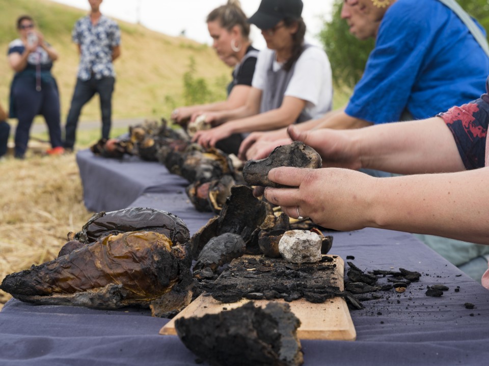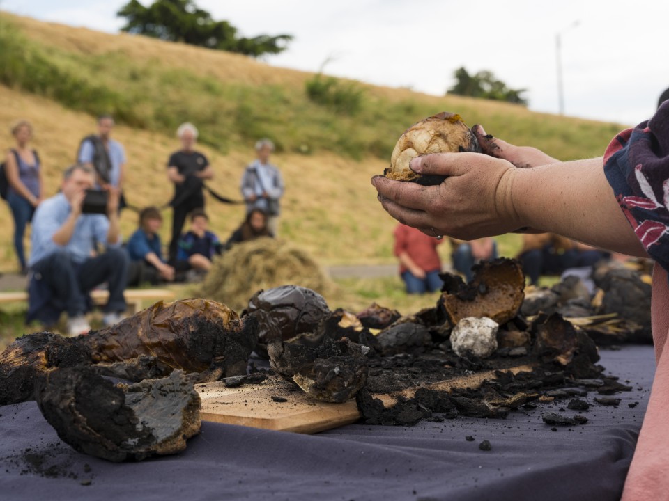 Johanna Rocard, performer, fire cooking and writing accompaniment