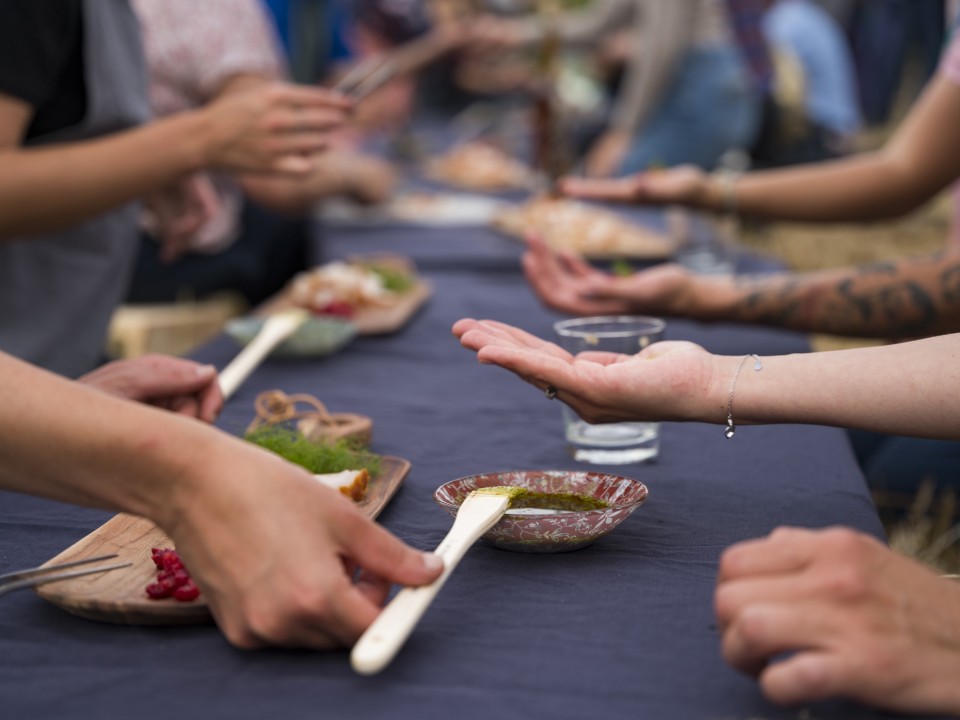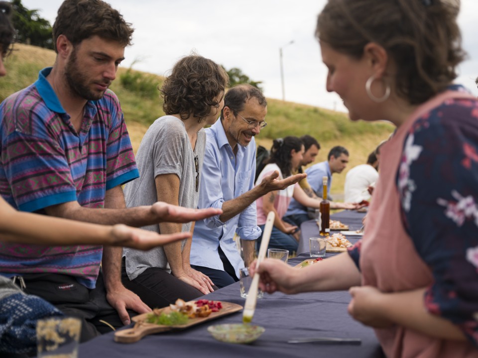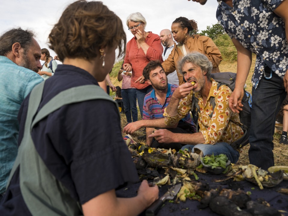 It was Saturday evening in Blois, with the POLAU arts & urbanism centre and the Loire Parliament hearings. With the complicity of landscape and river professionals, Loire producers: market gardeners, fishermen, pickers and a fermenter. A delightful opportunity to meet, investigate and share. "Ce que nous dit l'eau, rituel d'attachement" is an invitation to taste the Loire and drink in its landscape. An immersive sound walk and a culinary ritual: the aim is to awaken our attachment to the river that feeds us, our common good. With Johanna Rocard, Solène Marzin and Thierry Bouvet, we have worked with local produce and cooking techniques that bring back the water of plants and the Loire: vegetables coated and cooked over an open fire, koso, garum and sparkling wine. Together with Thomas Ferrand and Nina Feneteau, we dreamt up a drink that could convey a geographical, botanical, emotional and chemical context: drinking a sunset over the Loire. From magnesium to microplastics, water has a lot to tell us. And its story is a complex one.