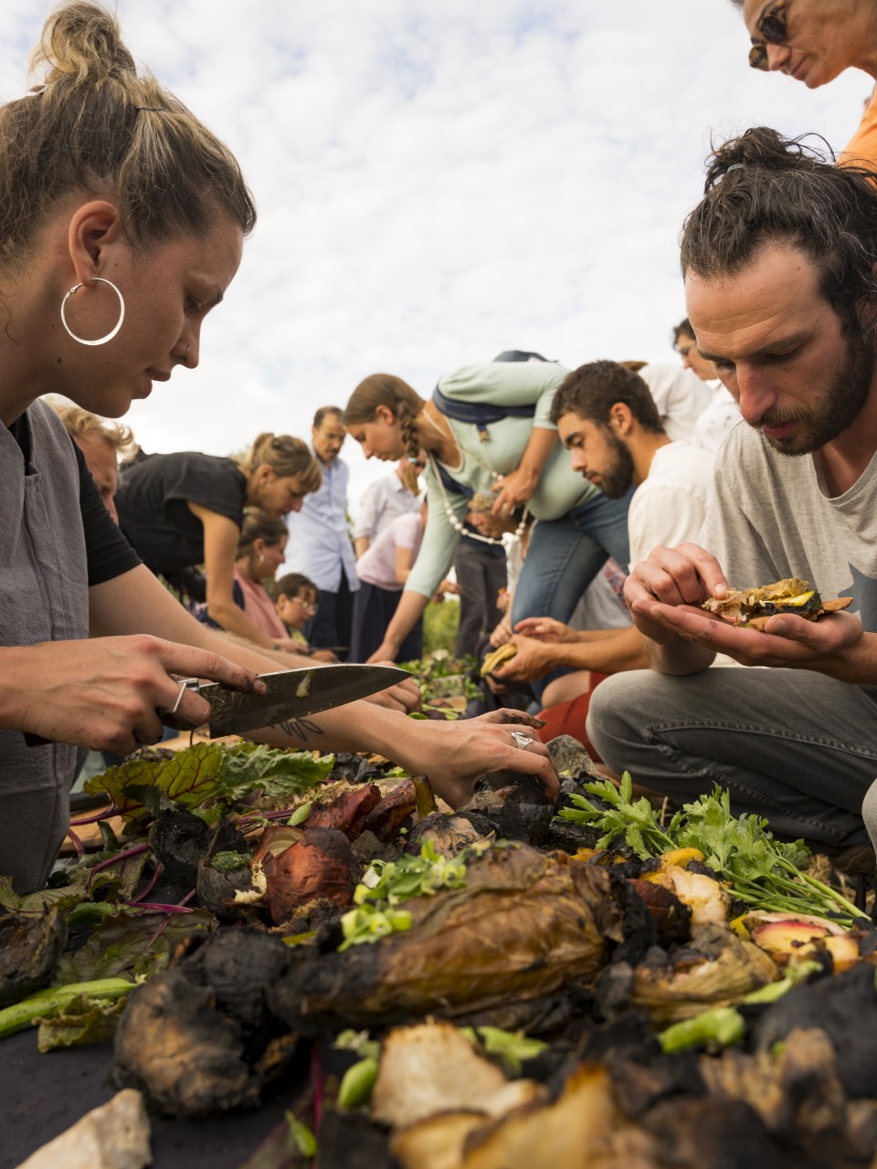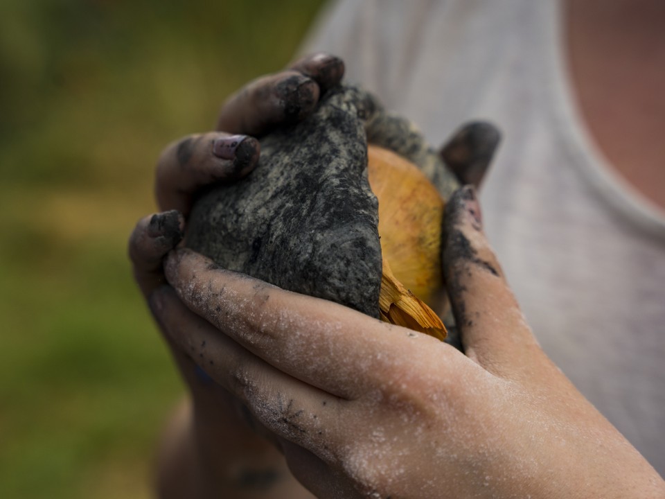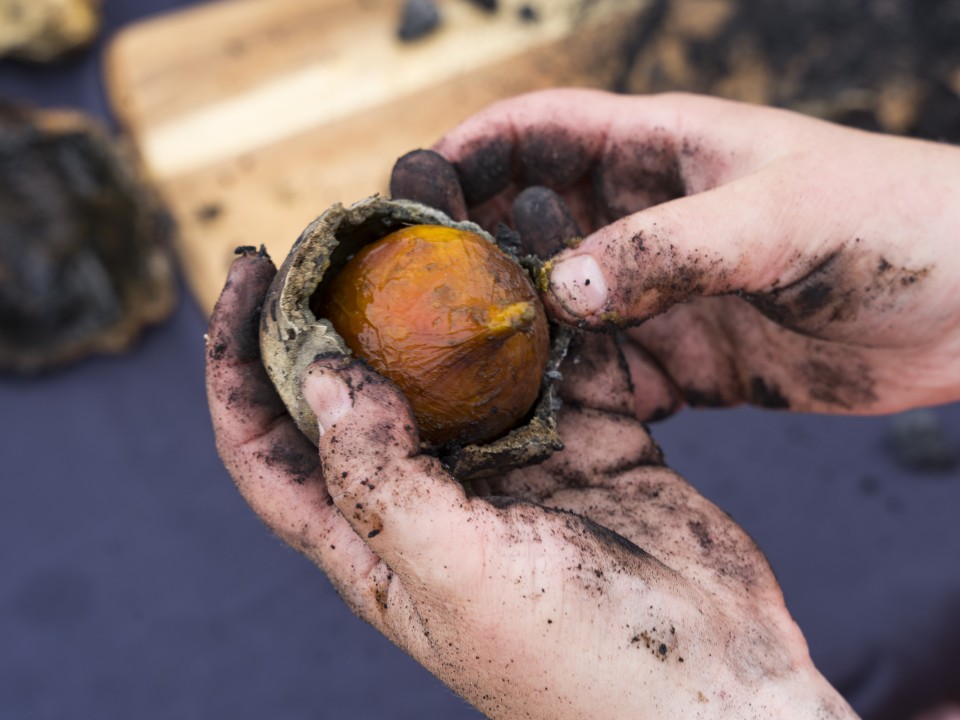 Solène Marzin, performer, fire cooking