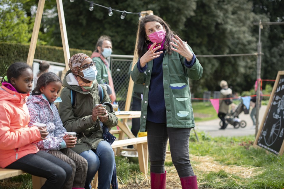 La Buissonnière ! Rituel d'inauguration poético-culinaire is an artistic performance that proposes to let the public experience a short but intense ritual of encounter with La Buissonnière. It's like going to meet an entity, a totem, an element of nature. The public will discover the Buissonnière by taking small steps towards it, carrying out poetic-culinary actions and welcoming rituals. Kneading, listening, tasting, sowing... These welcome rituals are based on the metaphor of a seed (a wish) that is planted and cultivated for the Buissonnière.
