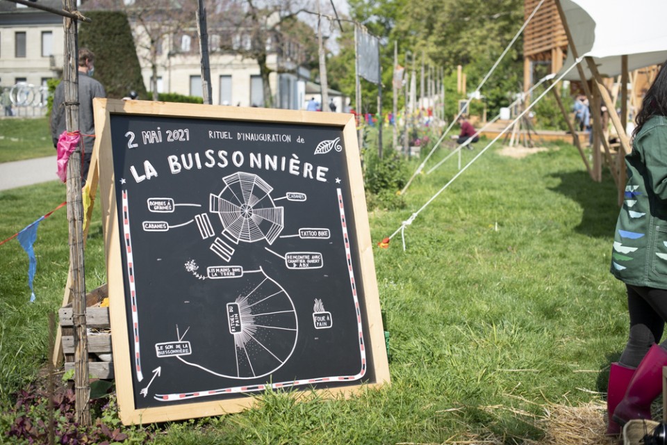 La Buissonnière ! Rituel d'inauguration prendra forme au travers des divers.es actions/rituels poético-culinaires. Ce qui relie toutes ses propositions sera l'envie de fêter la Buissonnière, de lui offrir un rituel de bienvenue, une fête à mi-chemin entre le printemps et l'été, un moment de partage avec les autres, un moment commun d'espoir.